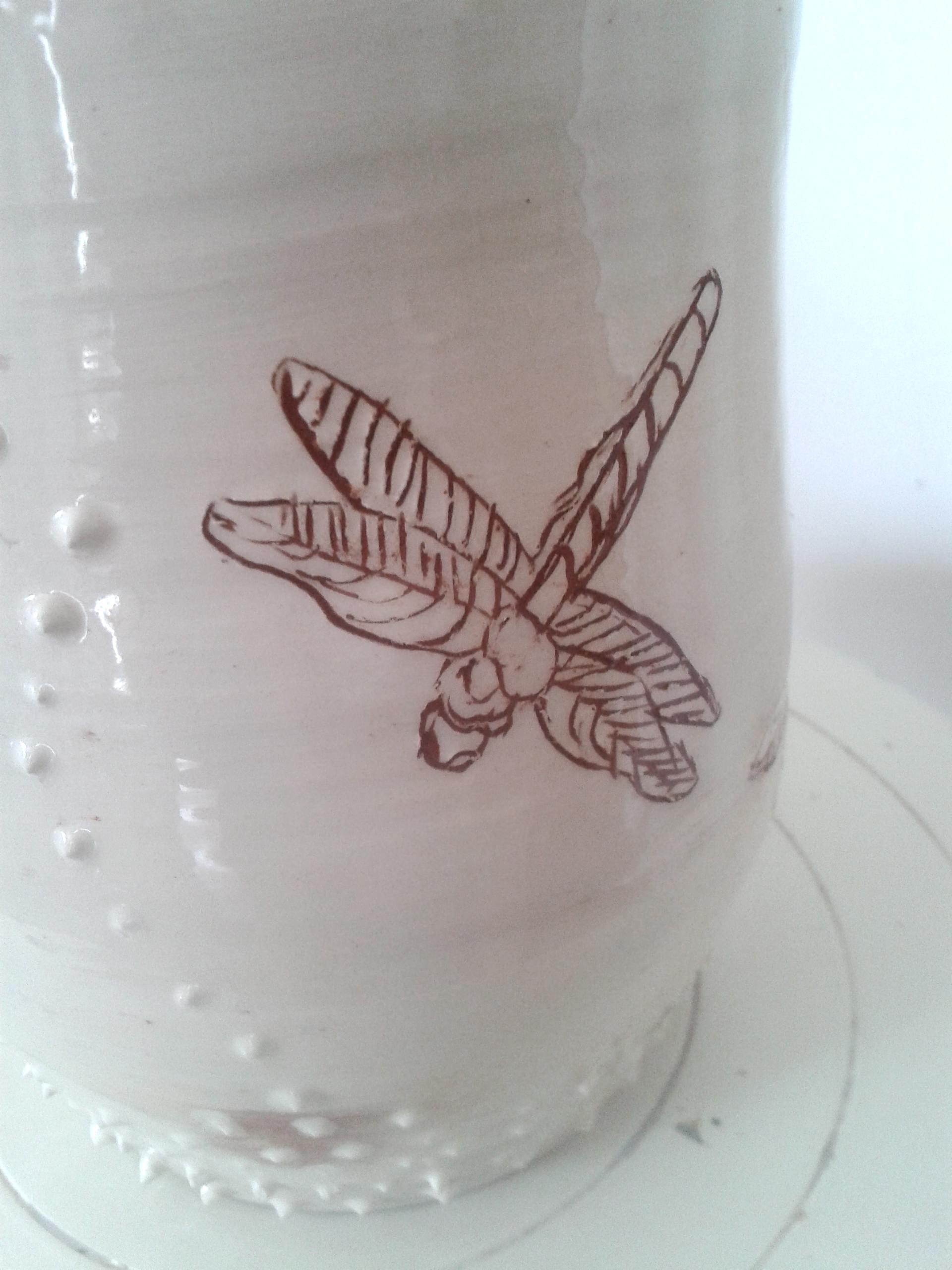 Et le joli vase aux motifs gravés de libellules prêtes à s’envoler! Assorti à la théière.