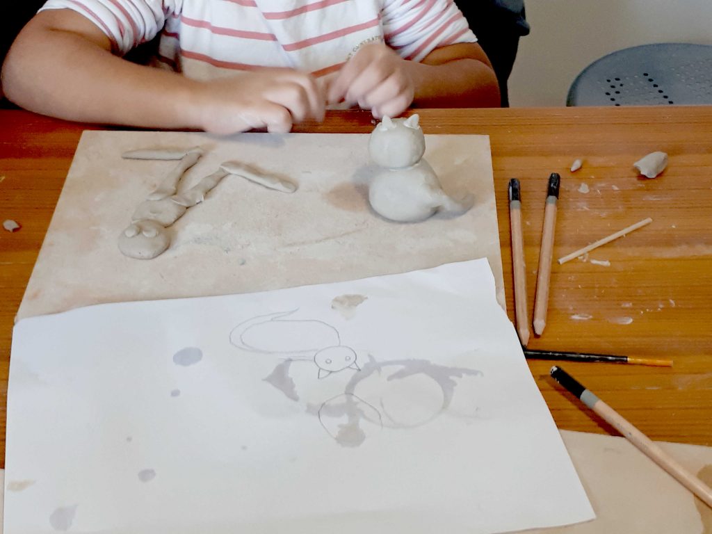 J’ai acceuilli pendant les vacances ,dans mon atelier, une quinzaine de jeunes pour une séance de modelage/sculpture. Ces jeunes de 8 à 11 ans sont venus s’initier et découvrir la création par la terre.