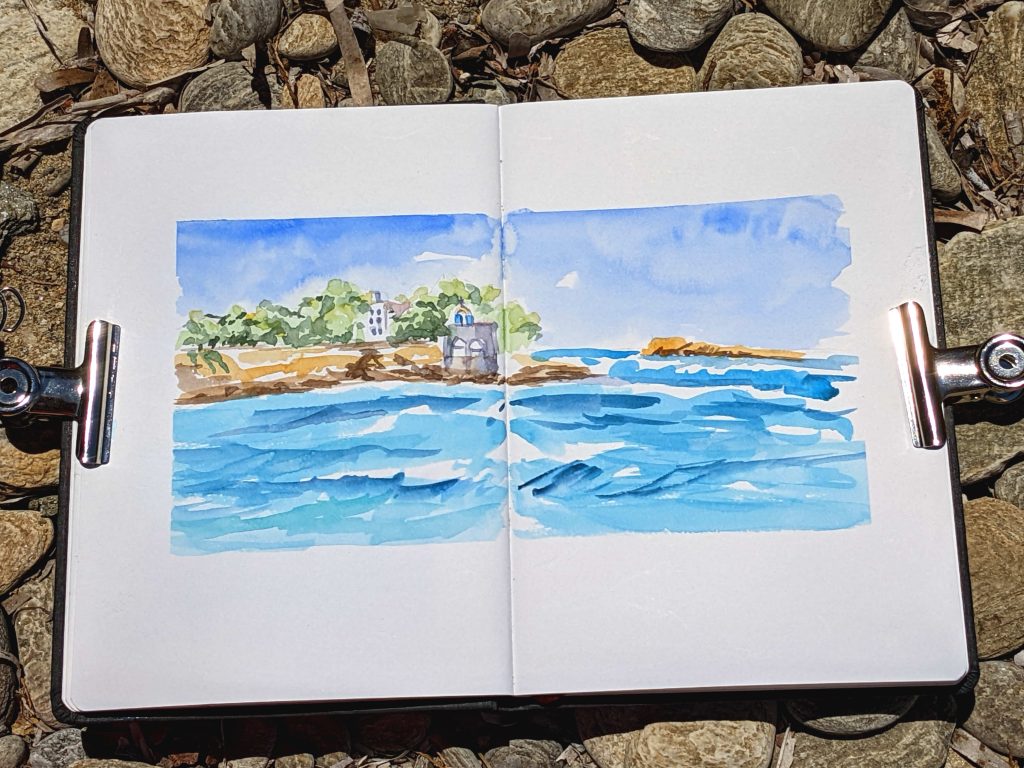 J’ai vraiment aimé cette île qui est tellement riche pour dessiner et aquareller sur mon carnet.