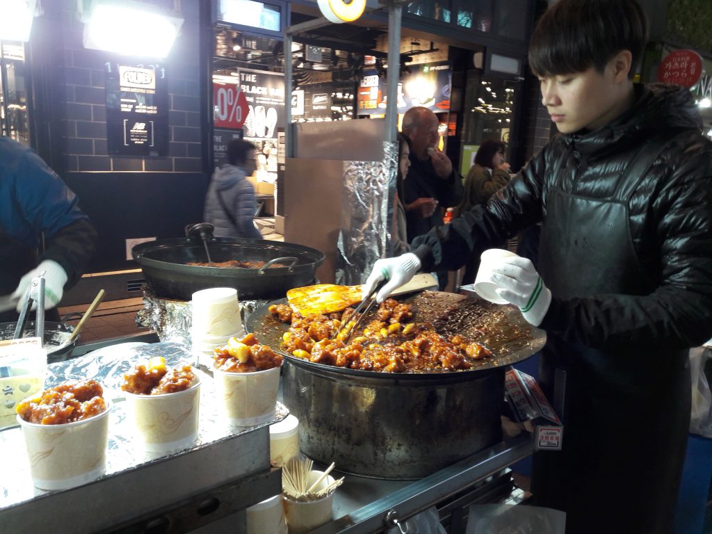 Un des plats les plus populaires est le tteobokki, un plat de pâtes épicé. Le poulet frit et les pattes de poulet sont aussi un best. Le bulgogi au boeuf est tèrs rassassiant.