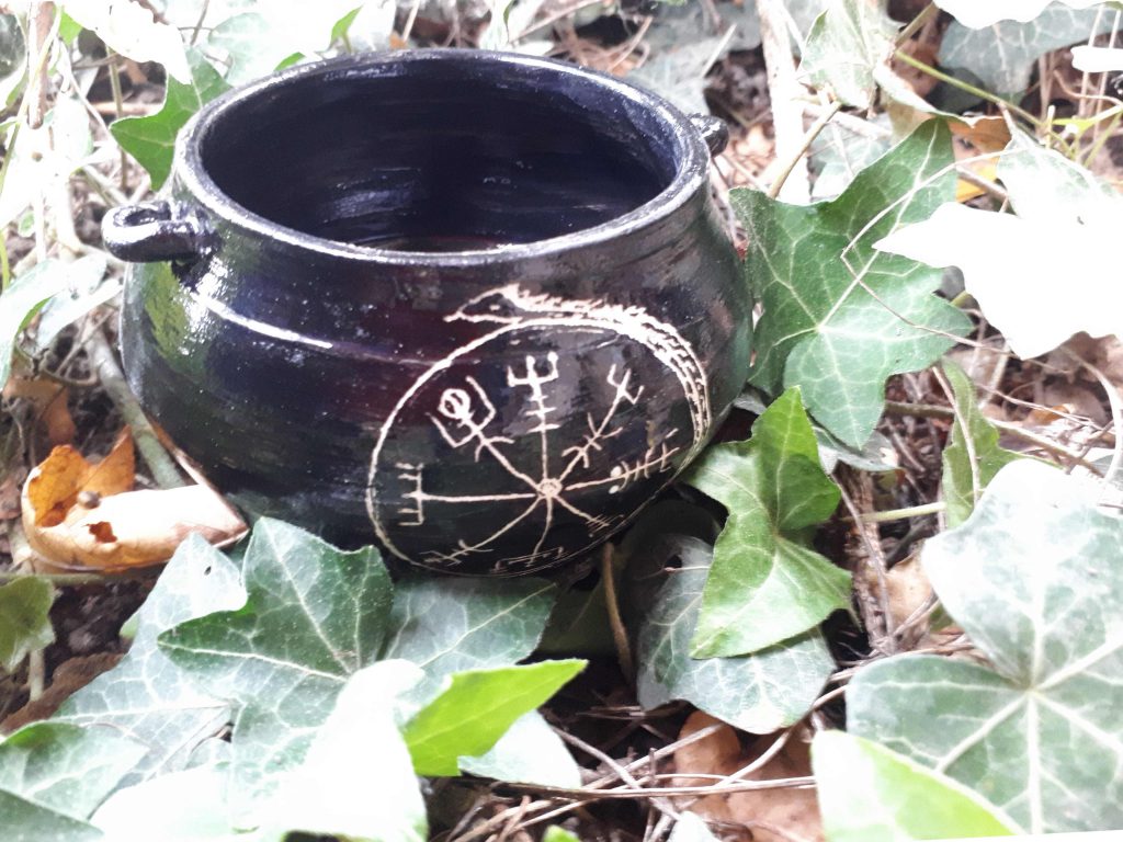 Un chaudron magique inspiré de la forêt aux couleurs de feuilles et ses mignons champignons