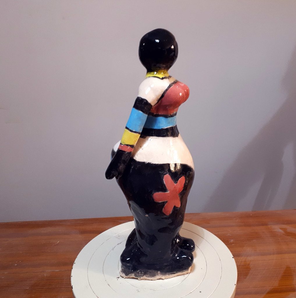 Voici la sculpture en cours de réalisation, les proportions ont été modifiées au fur et à mesure pour s’harmoniser avec le décor très coloré.