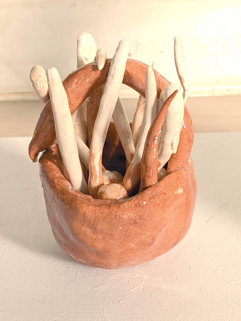 La terre est aussi malléable, douce, ou plus rêche, humide,sèche, et malléable, les formes sefont et se défonttant qu’il n’y a pas eu de cuisson.