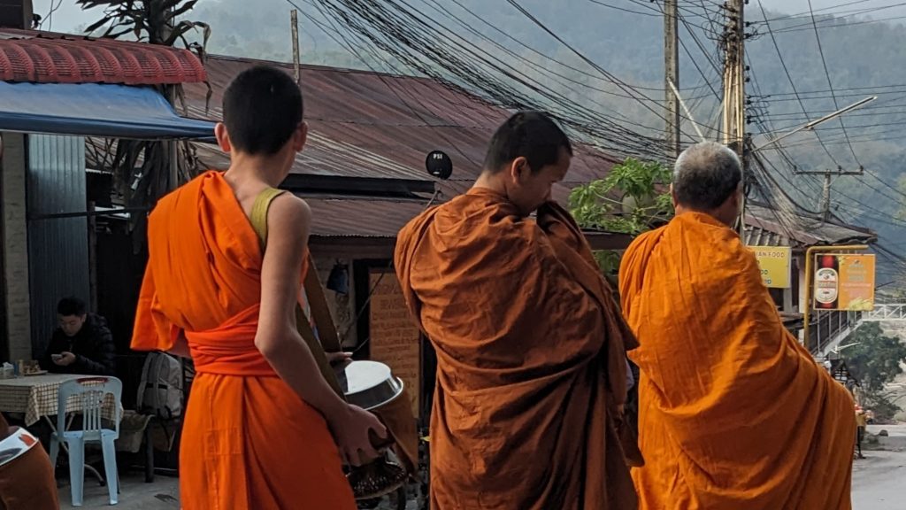 Le matin nous irons assister et remplir nos carnets lors de la cérémonie du Tak Bat, cérémonie bouddhiste d’offrandes traditionnelle dans tout le pays.