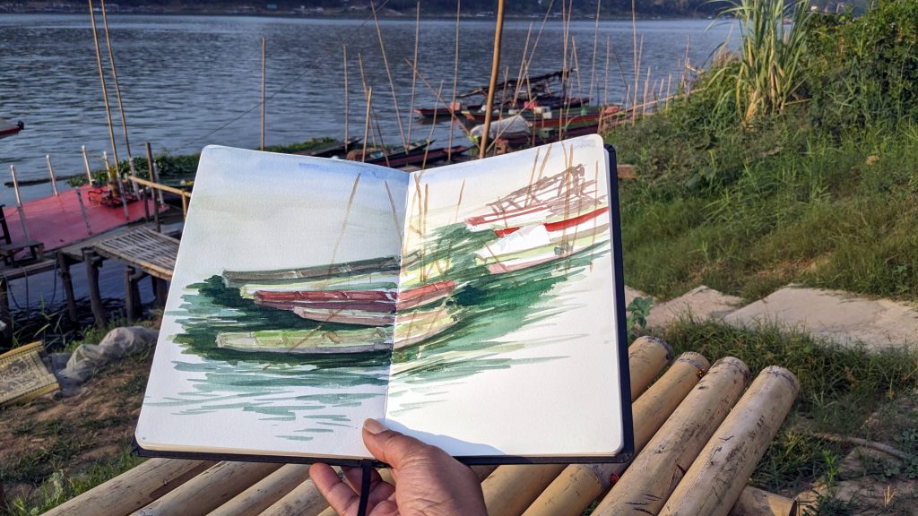 Faire un carnet de voyage c’est cristalliser son regard et sa sensibilité par le biais du dessin, de l’aquarelle,… Une façon de voyage qui s’imprègne en nous, rendant le voyage plus fort en émotions et ressentis.